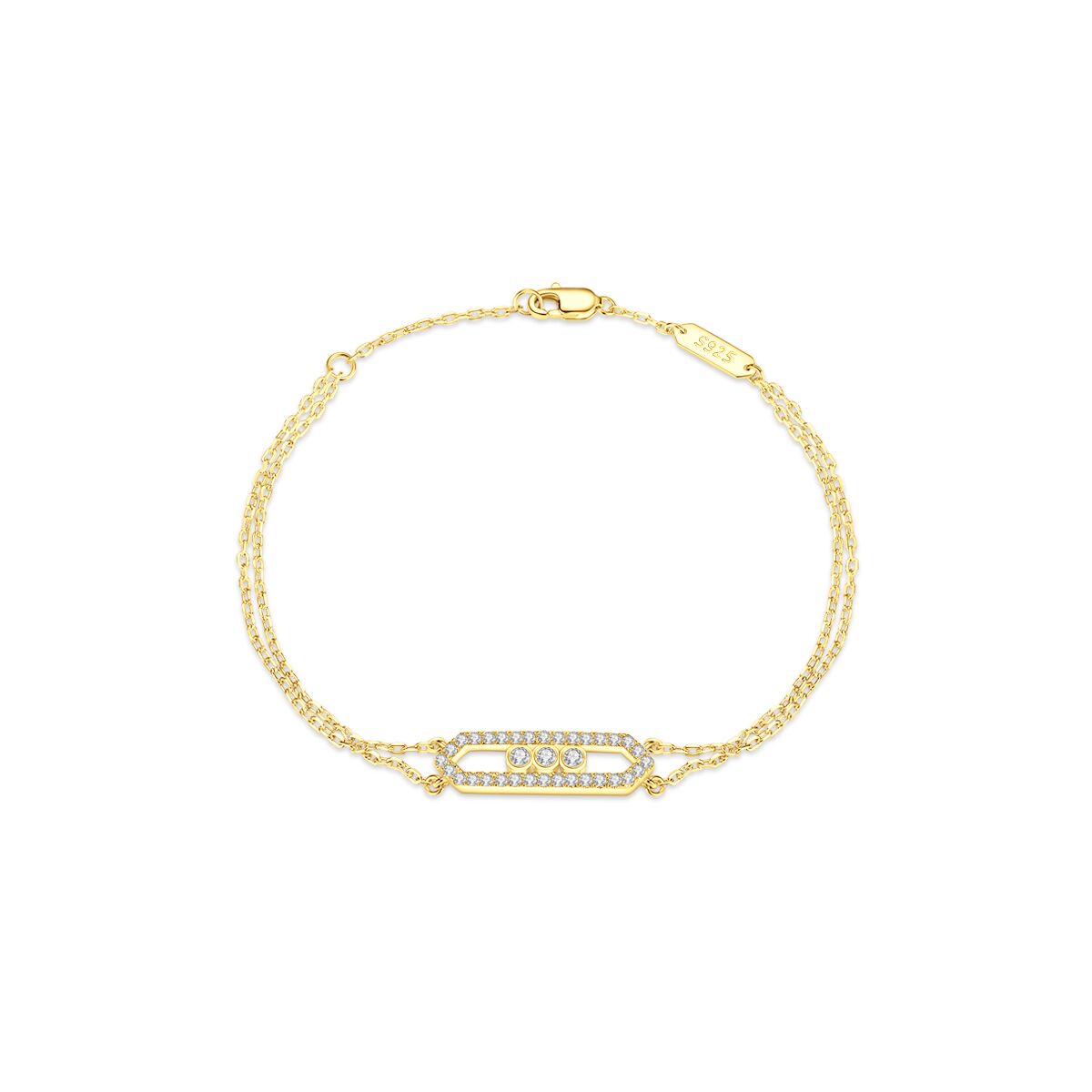 Meticulously made from premium 925 sterling silver with lavish 18K gold plating, this bracelet features a sleek geometric bar pendant encrusted with shimmering cubic zirconia stones. The intricate pavé setting mimics the twinkle of starlight and the delicate clustered blooms of gypsophila (baby’s breath), creating a luminous effect that catches every glimmer of light.