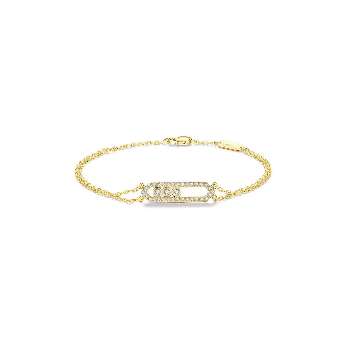 Meticulously made from premium 925 sterling silver with lavish 18K gold plating, this bracelet features a sleek geometric bar pendant encrusted with shimmering cubic zirconia stones. The intricate pavé setting mimics the twinkle of starlight and the delicate clustered blooms of gypsophila (baby’s breath), creating a luminous effect that catches every glimmer of light.