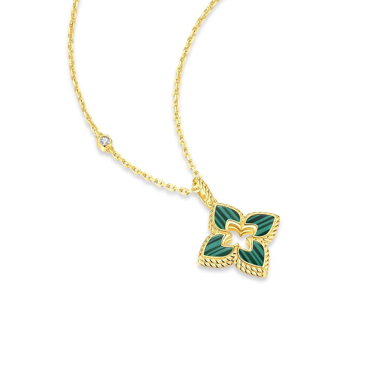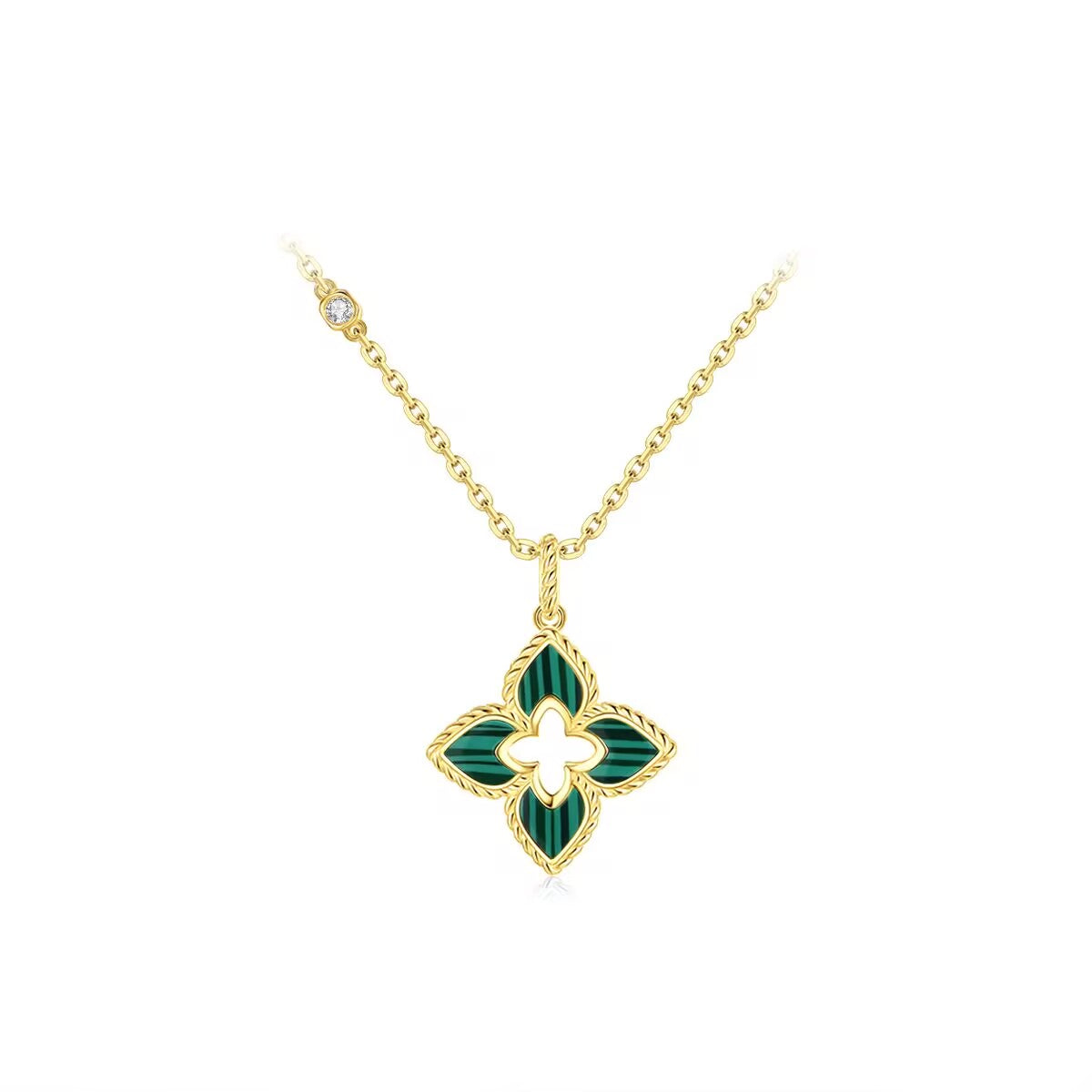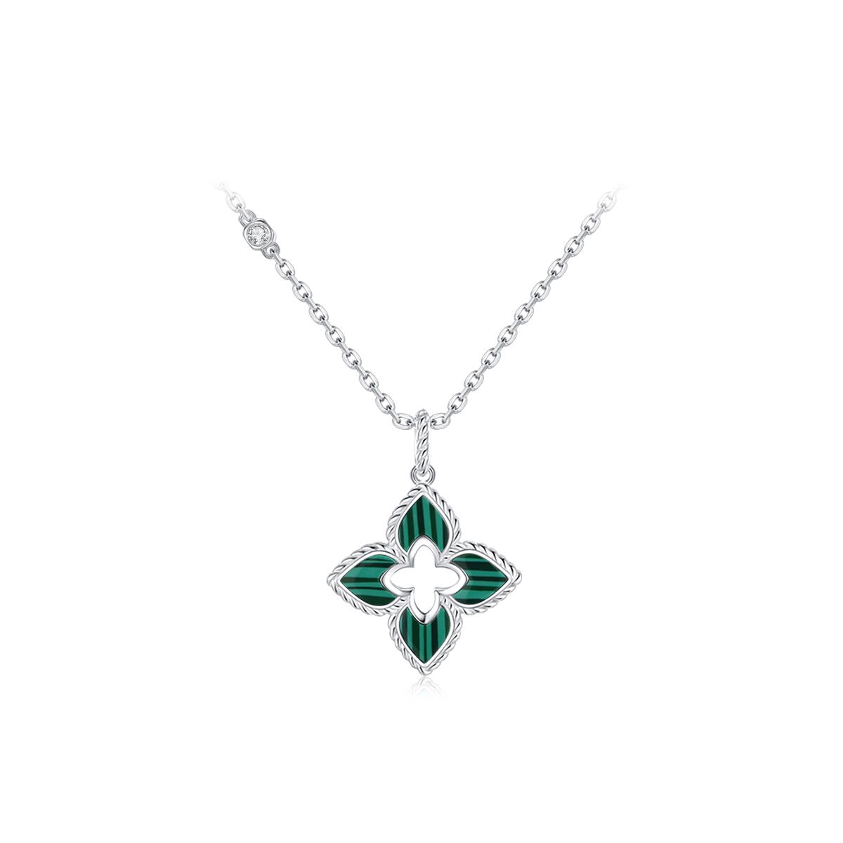 925 Sterling Silver Malachite Quatrefoil Pendant