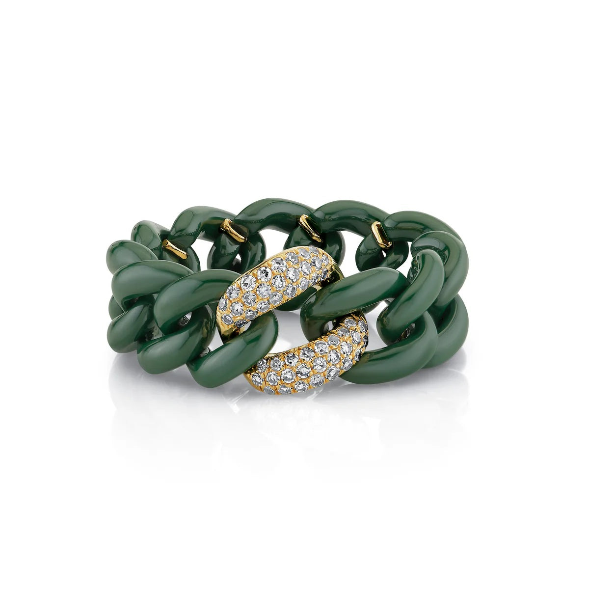 PAVE ROLEX GREEN CERAMIC LINK RING