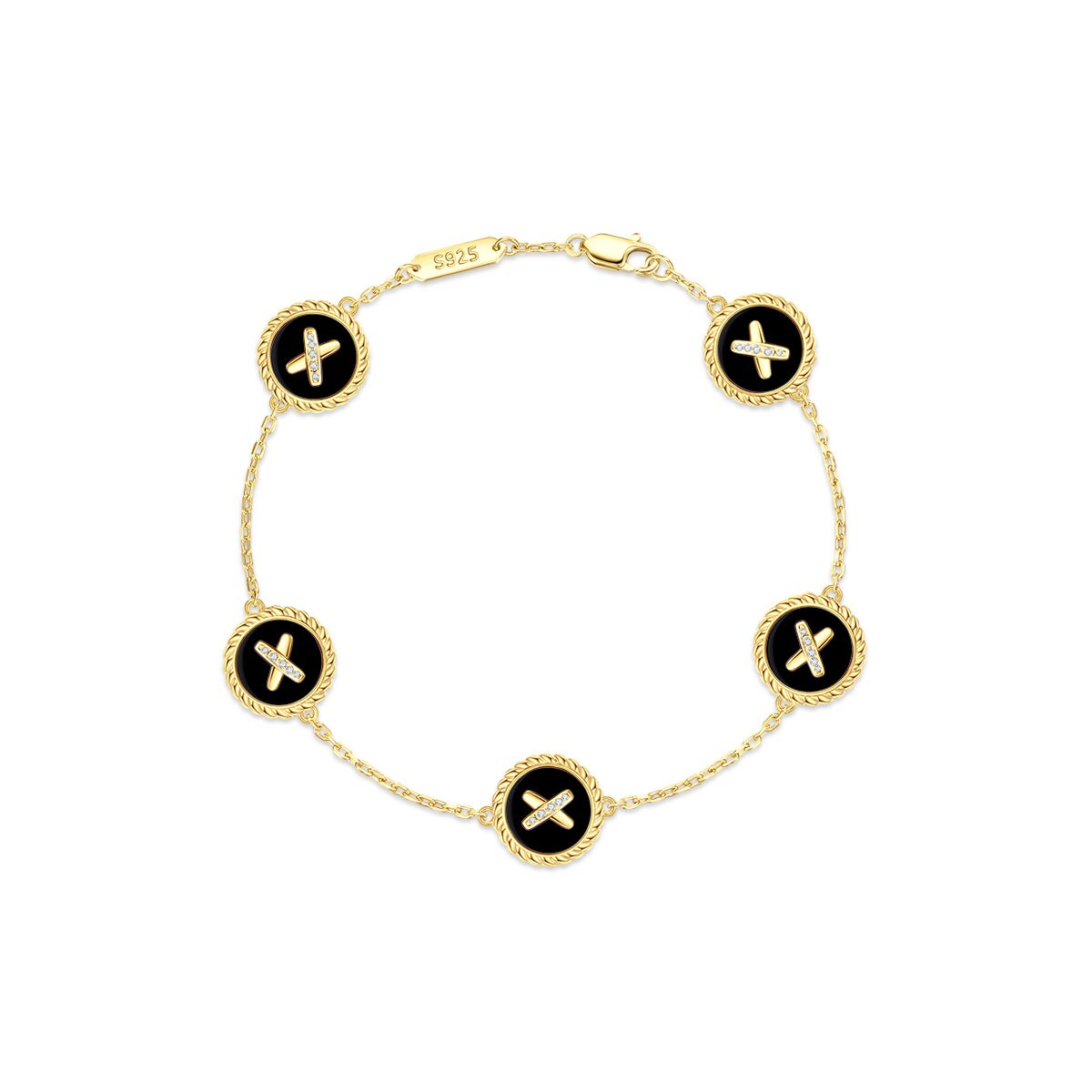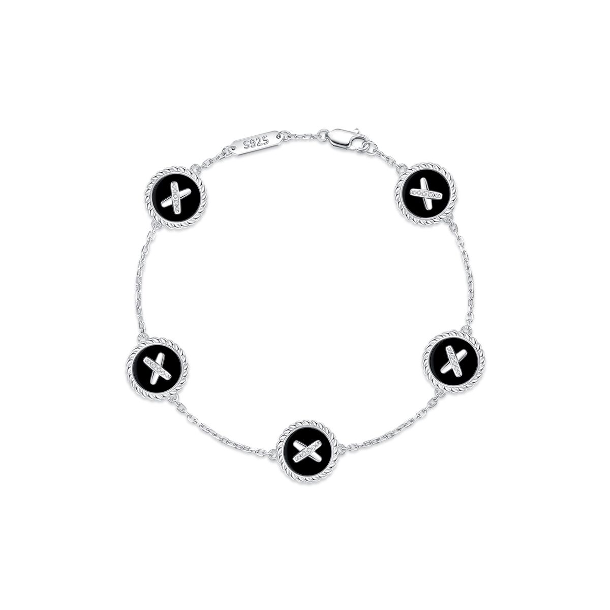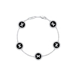 Black Onyx Cross Badge 925 Silver Five-Flower Bracelet