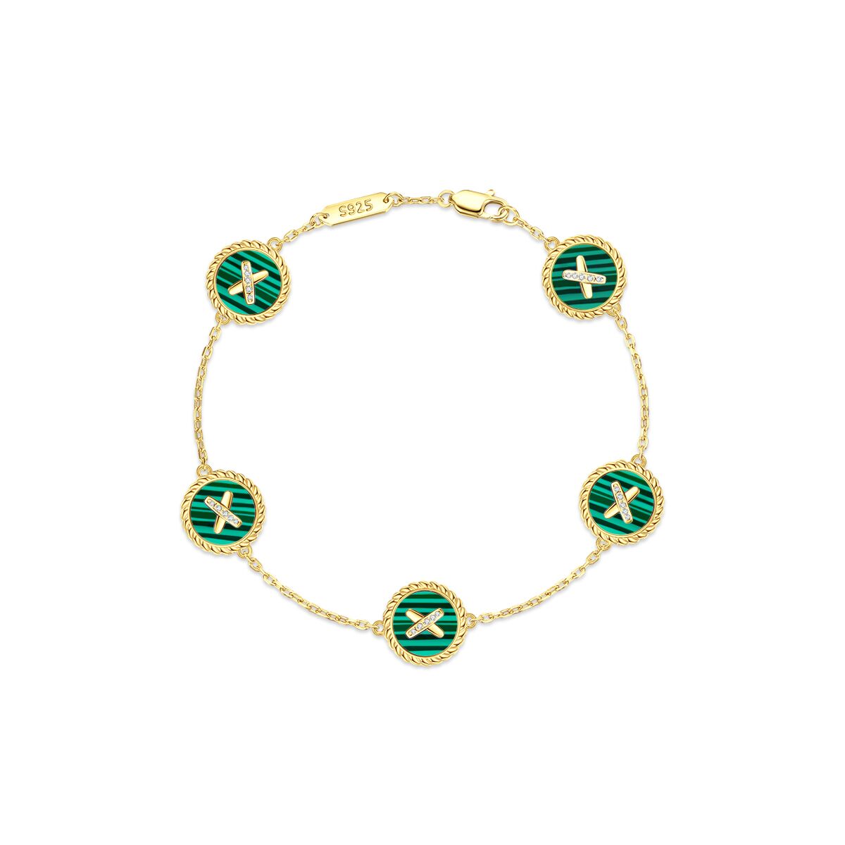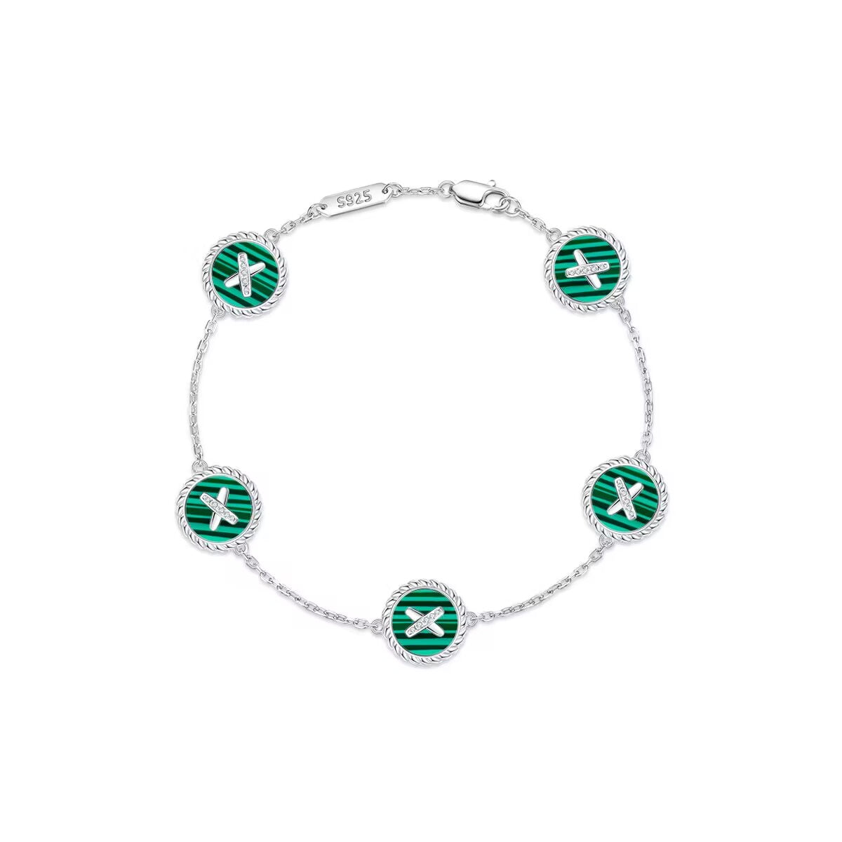 Malachite Cross Badge 925 Silver Five-Flower Bracelet