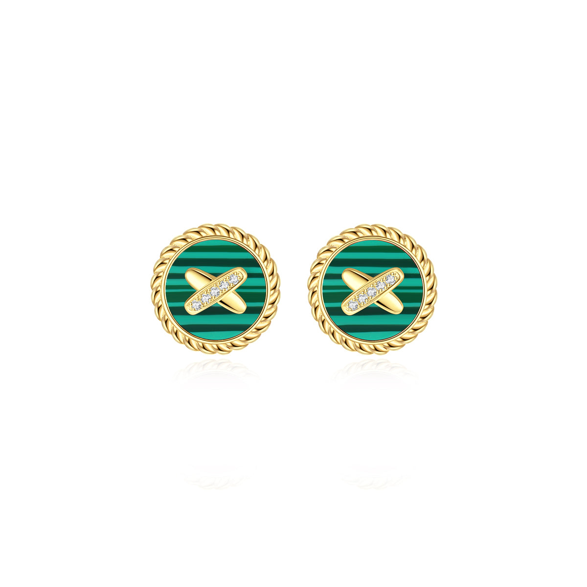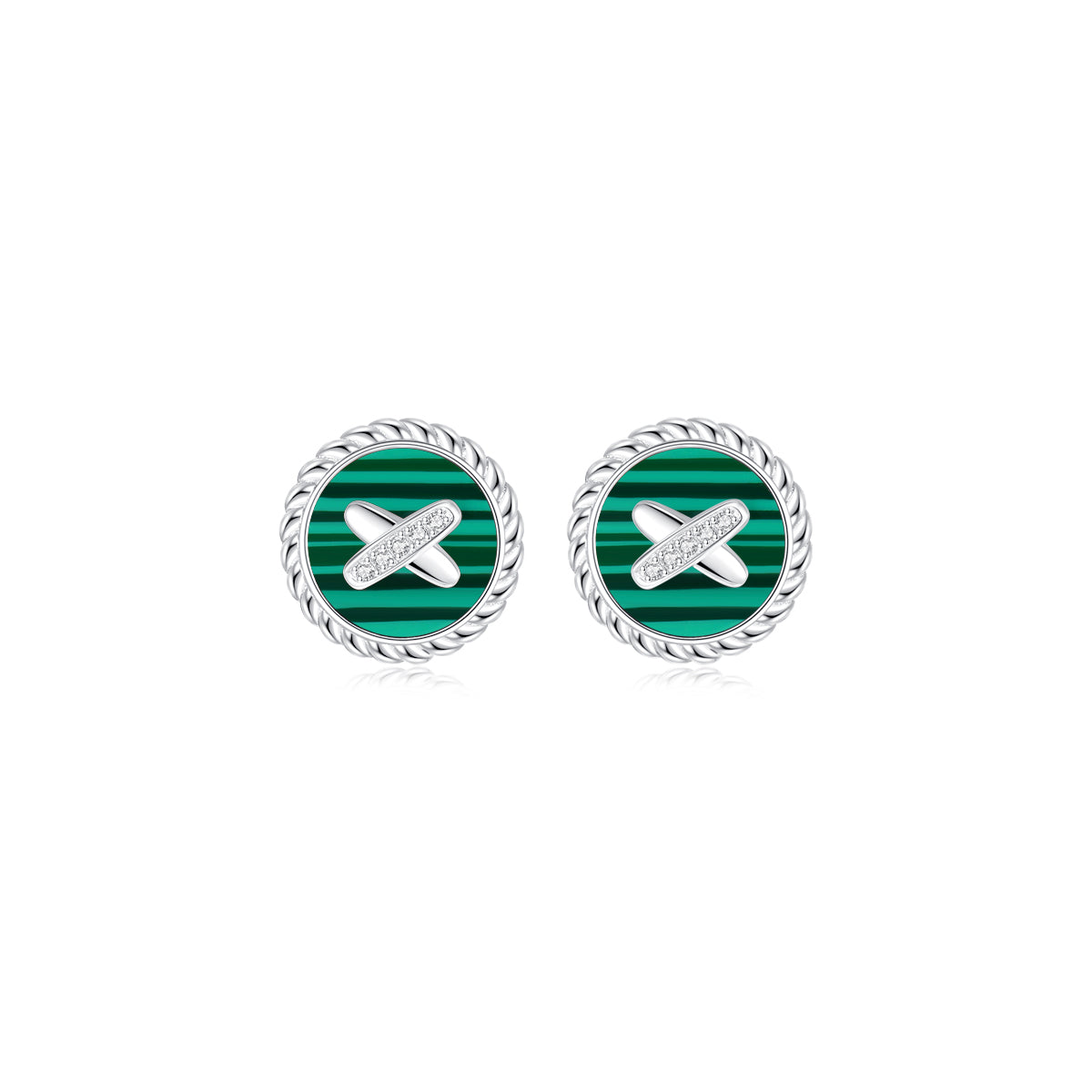 Malachite Cross Badge 925 Silver Stud Earrings