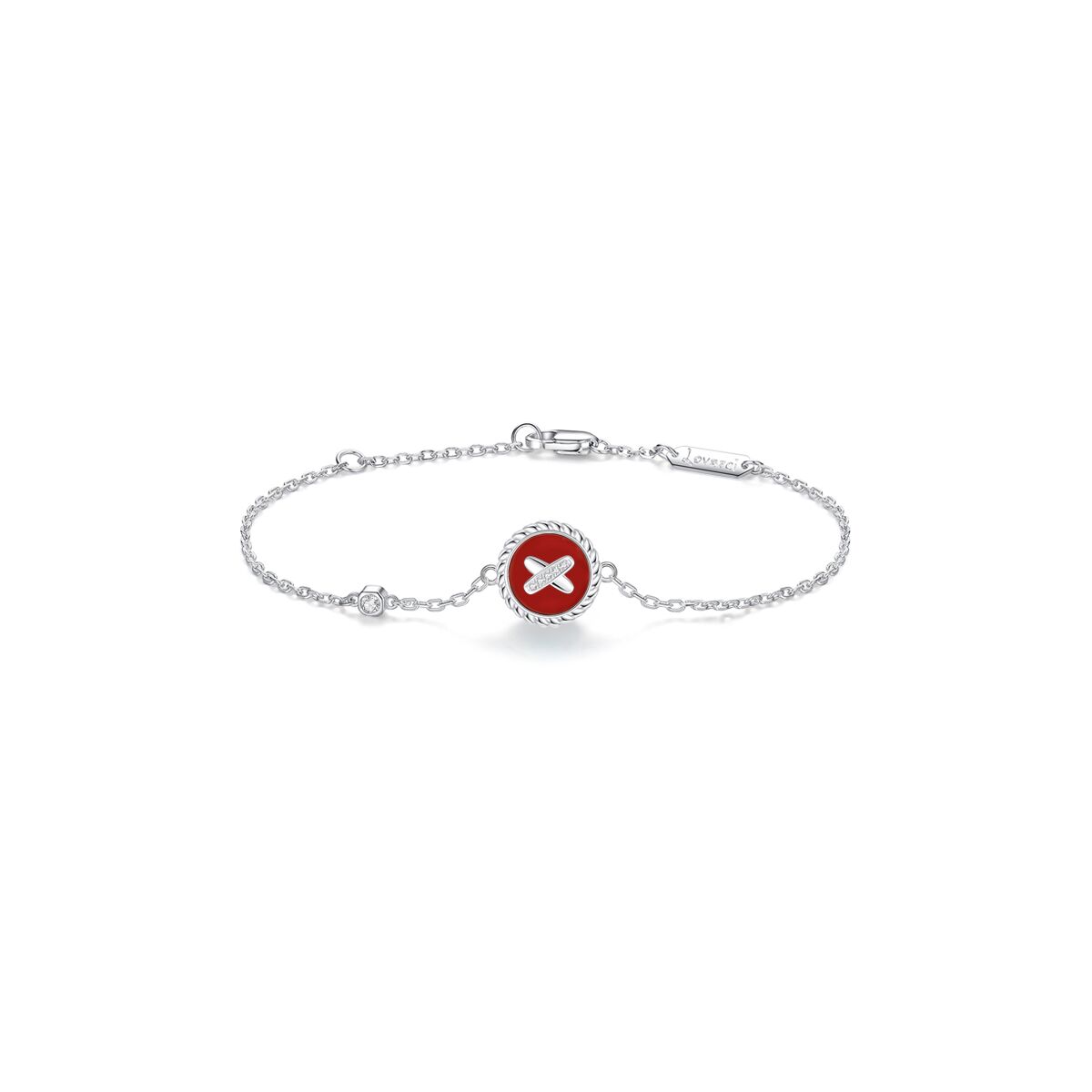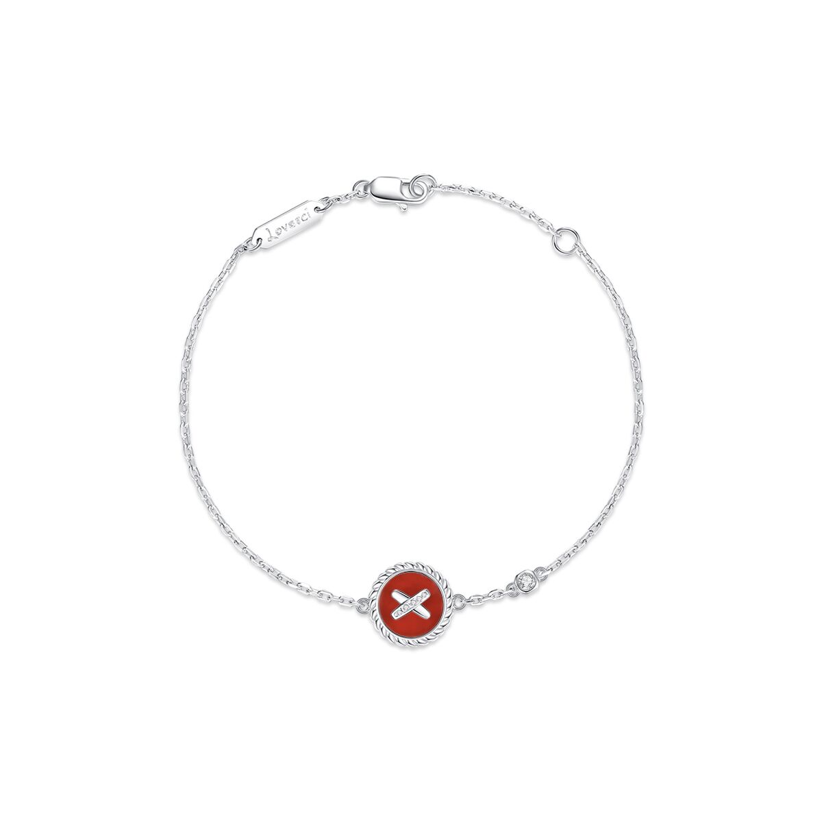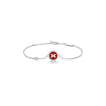 A sophisticated and stylish 925 silver bracelet crafted from ethically sourced recycled silver, set with red agate and cubic zirconia.