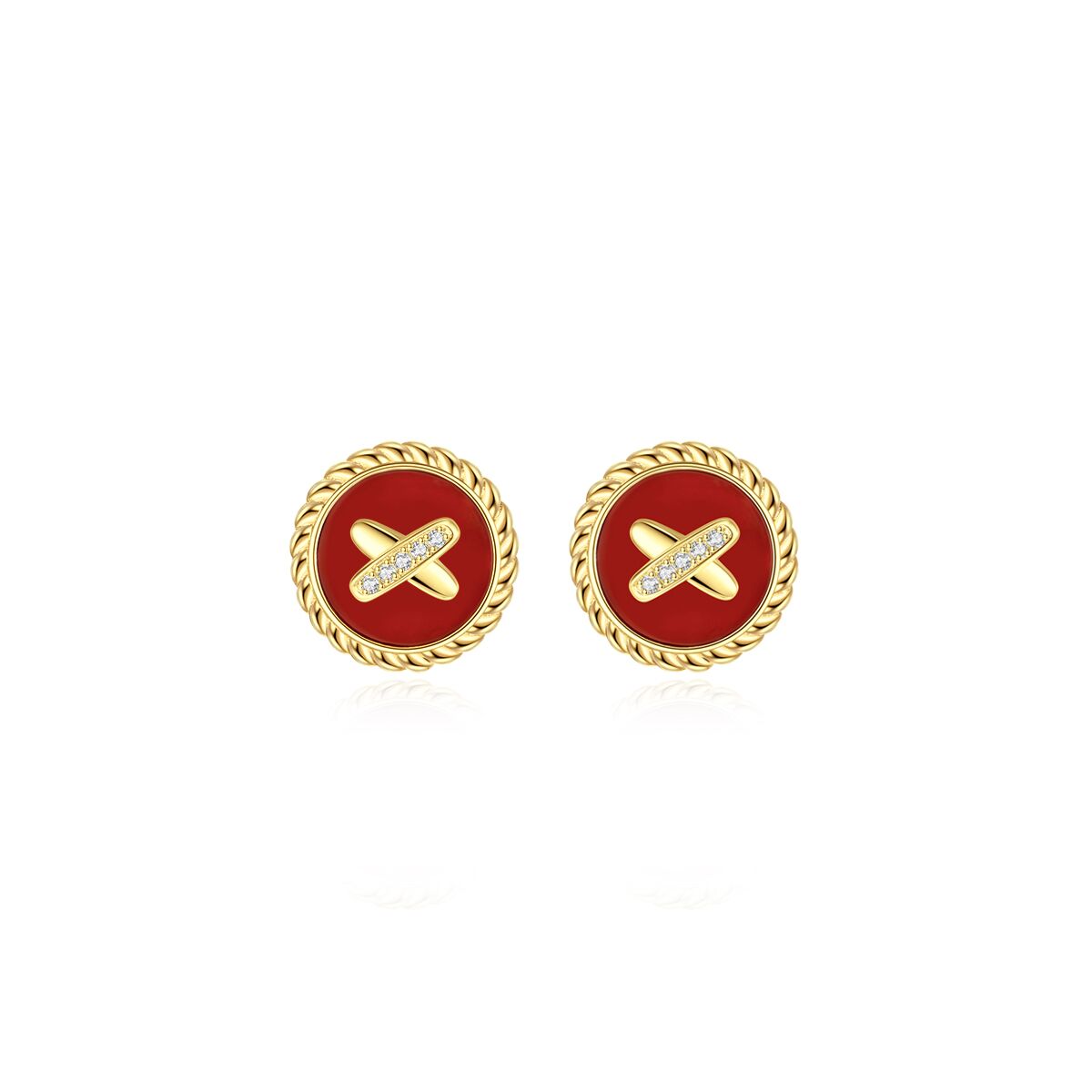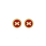 Red Agate Cross Badge 925 Silver Stud Earrings